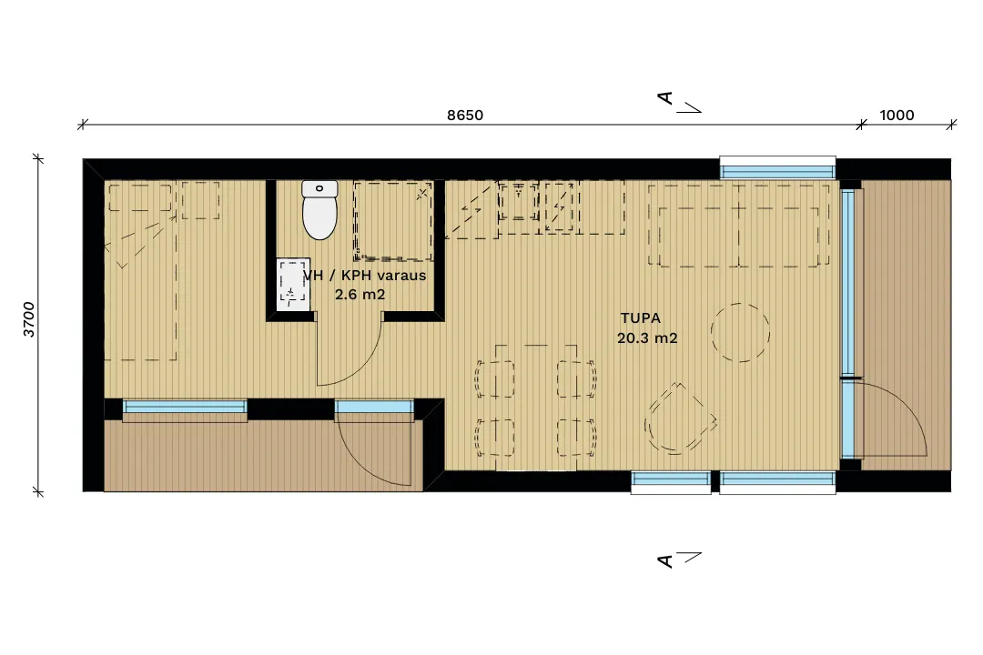 Rakennukset on suunniteltu alle 30 kem², jotta ne kuuluvat rakennuslupauudistuksen piiriin ja helpottavat rakentamisen aloitusta.