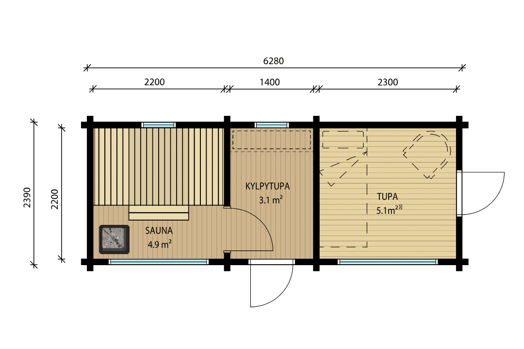 Sauna, Kylpytupa™ padalla, eteinen, tupa